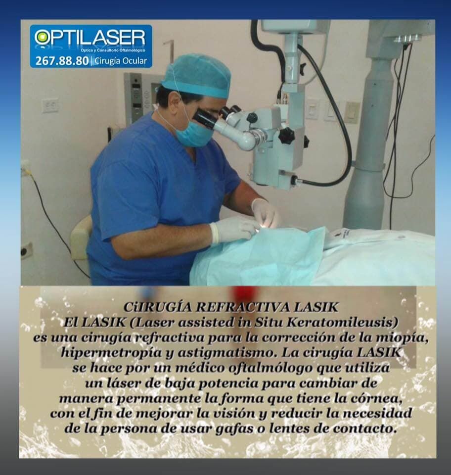 La muy conocida cirugía láser, es aquella en la cual se moldea la córnea (superficie transparente del ojo) mediante la aplicación de rayos láser, se le conoce comúnmente como LASIK, también contamos con otro procedimiento que es del tipo superficial llamado PRK, o LASEK.